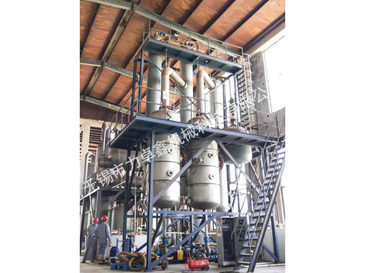 產品概述:多效蒸發(fā)器由各效加熱蒸發(fā)器、各效分離器、冷凝器、熱壓泵、殺菌器、保溫管、真空系統、各效料液輸送泵、冷凝排水泵、操作平臺、電器儀表控制柜及閥門、管路等系統組成。